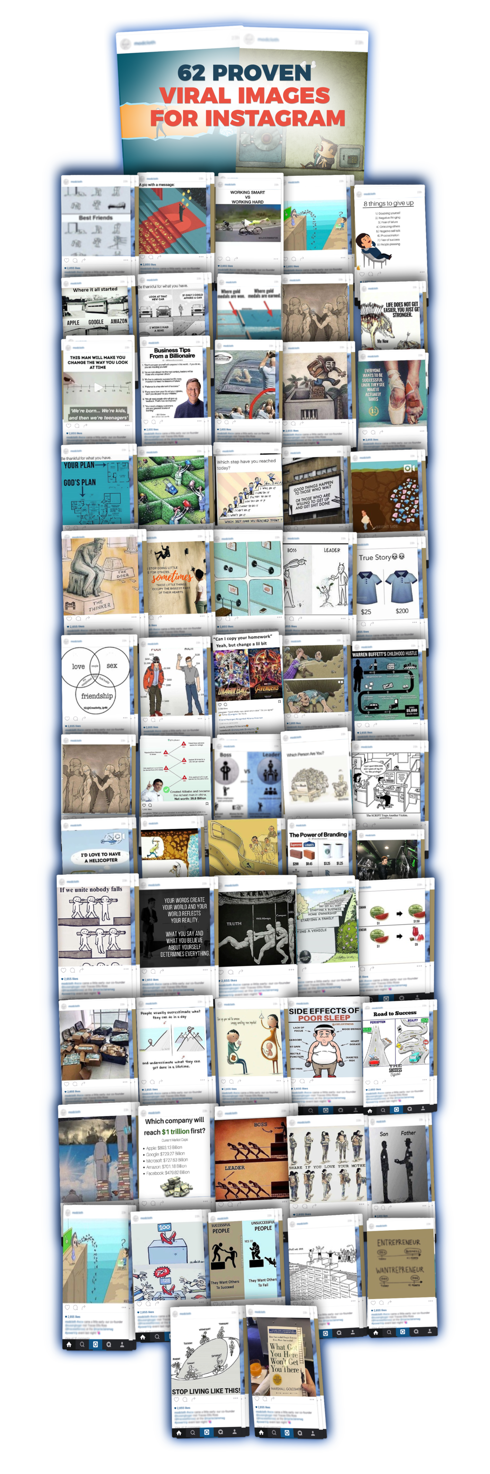 You'll be getting 62 of these proven viral images so that you can post up to twice daily on your Instagram.